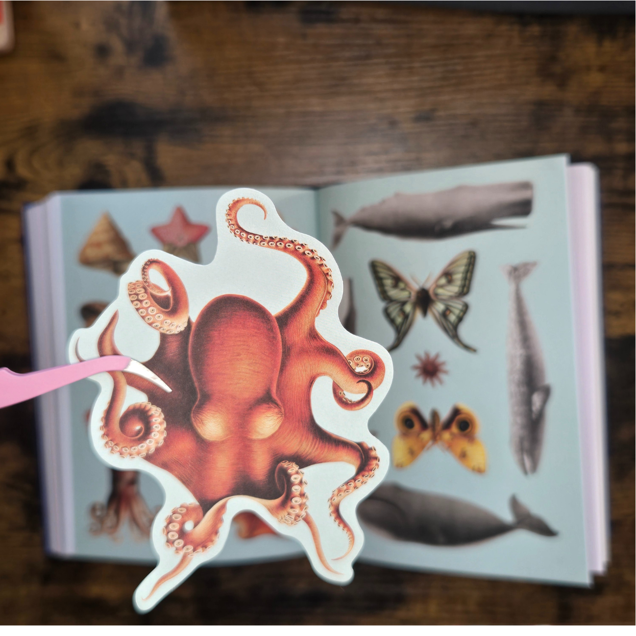 The Antiquarian Sticker Book is a richly detailed collection of vintage-style stickers inspired by old books, botanical illustrations, maps, curiosities, and ephemera.
